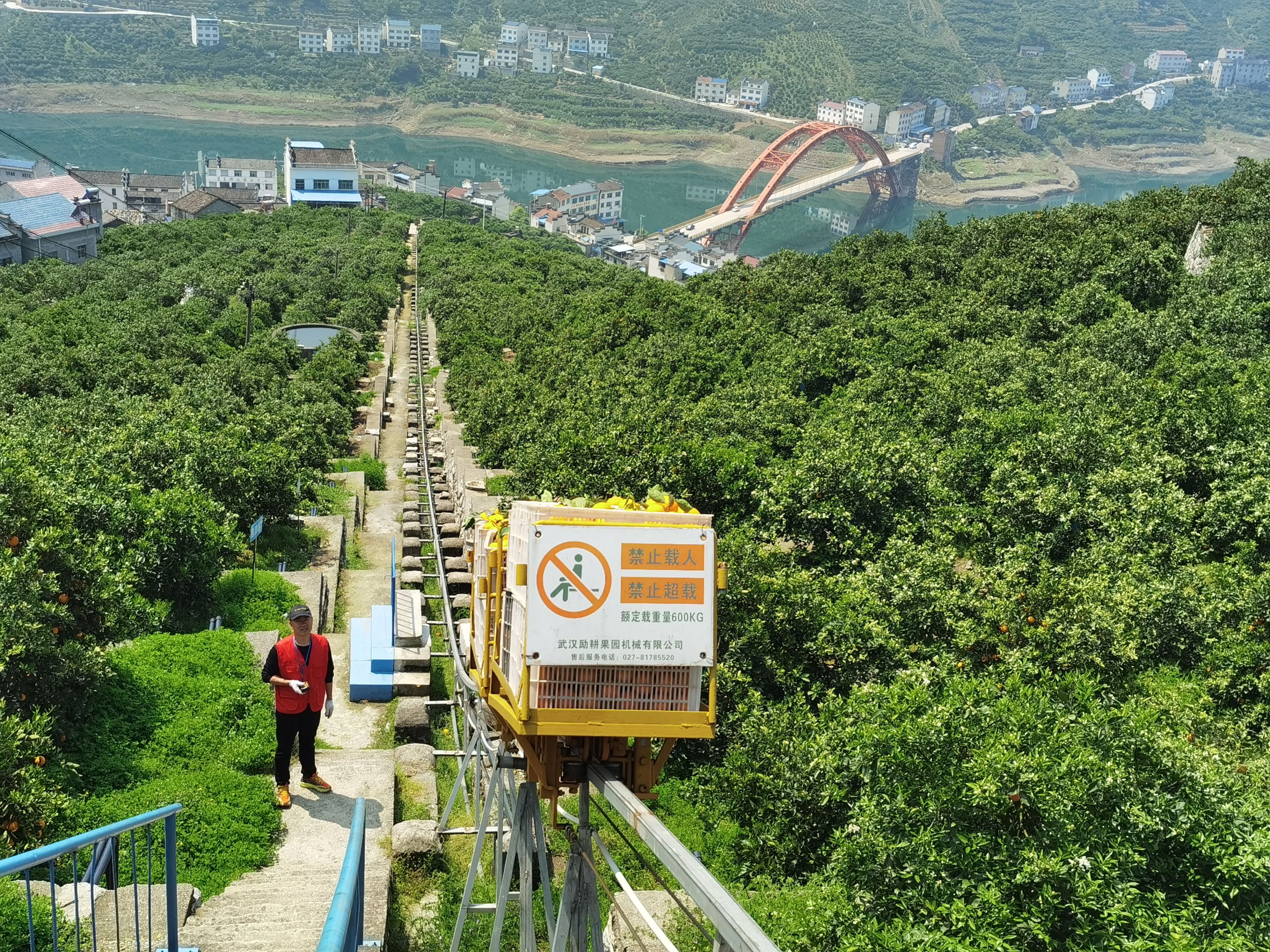 在秭归,同样的轨道被铺设在山间。2017年以来,秭归县共安装轨道运输机1800多条,累计36万多米,应用面积达30多万亩,解决果农“物资上山、果实下山”的大难题。