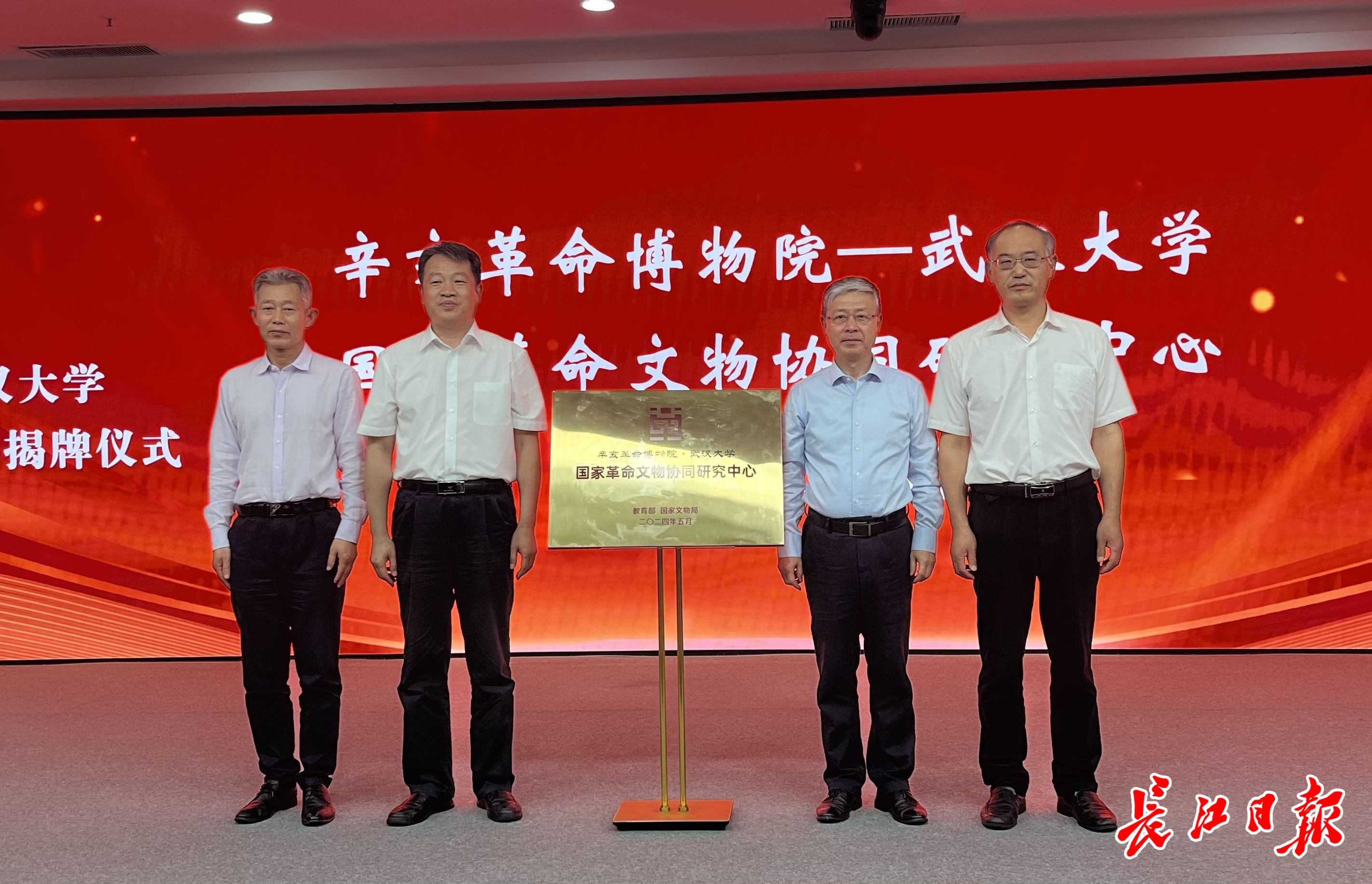 辛亥革命博物院和武汉大学领导和协同研究中心牌合影。长江日报记者万建辉摄