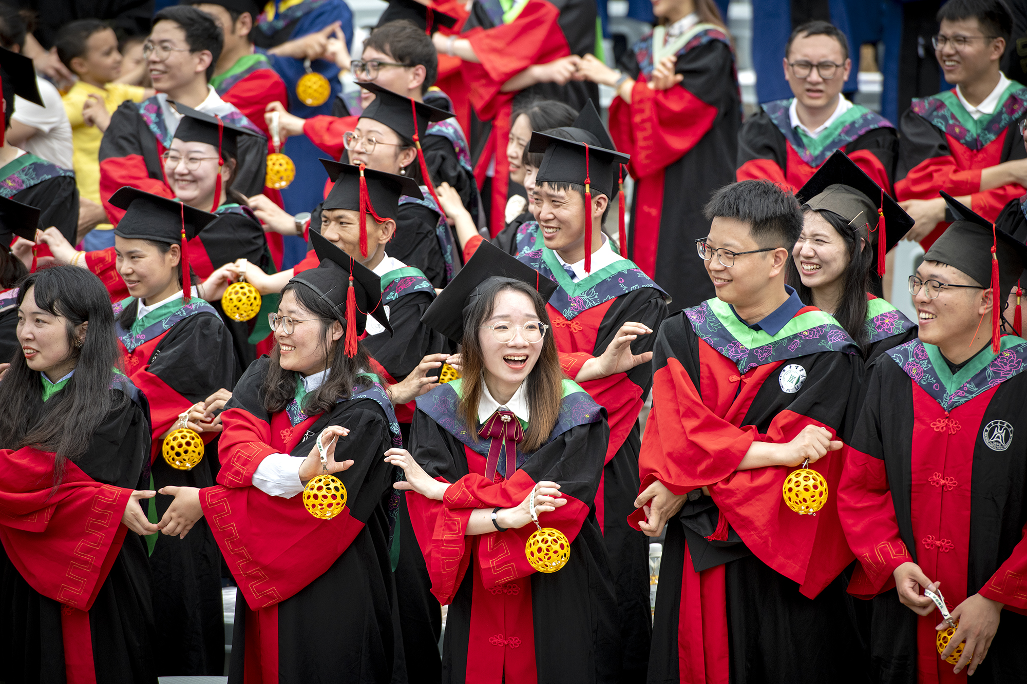 最后,全场毕业生共同挥动并抛掷“狮山龙珠”,师生们拥抱道别,现场氛围热烈感人。