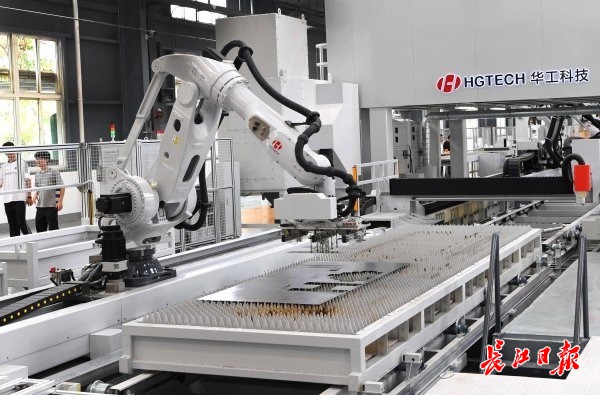 长江日报大武汉客户端7月1日讯 7月1日,长江日报记者走进宽敞明亮的华工科技中央研究院中试基地,巨大的机器人手灵巧地抓取钢板进行激光切割加工、传递上下料产线演示。中试基地是一个集中试开发、生产工艺试验、新工艺放大和成果推广为一体的综合性技术研发基地。