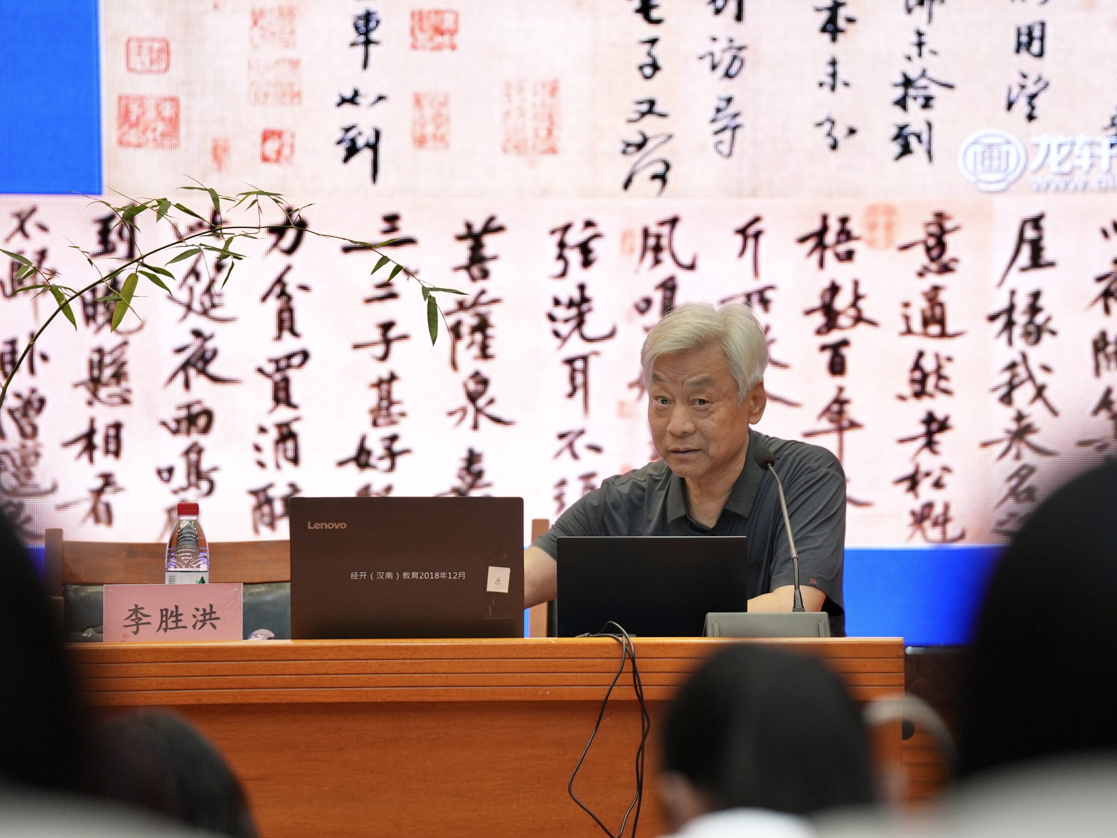 李胜洪在武汉经开区沌口小学分享《行书揆要》。
