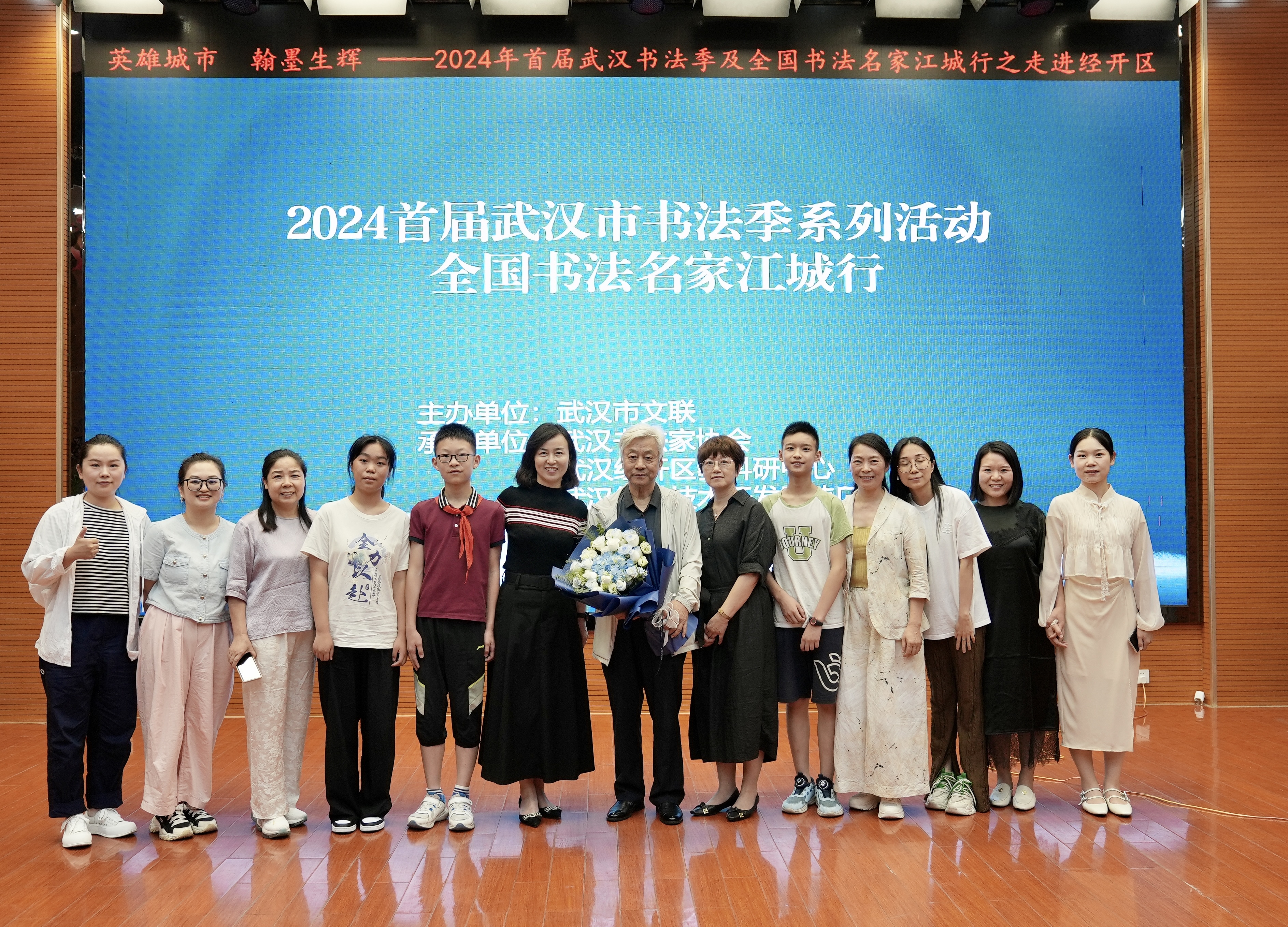 书法爱好者同李胜洪合影。
