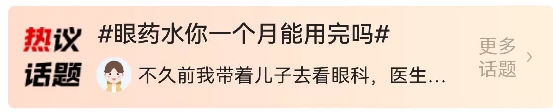 你碰到过眼药水开封后用不完的情况吗?快来参与#眼药水你一个月能用完吗#话题互动。