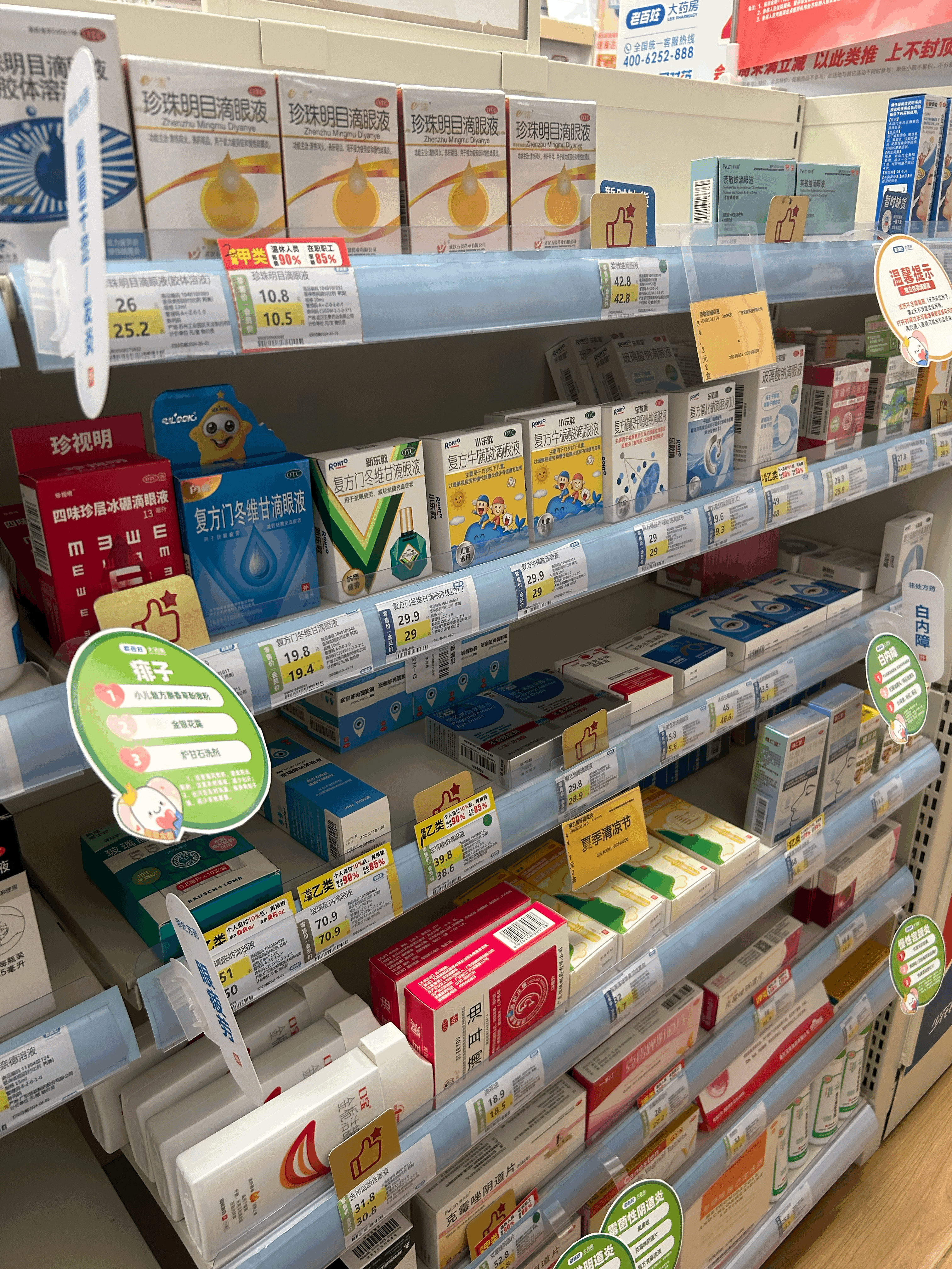 药店货架上摆放着不同规格装的眼药水。记者樊友寒 摄