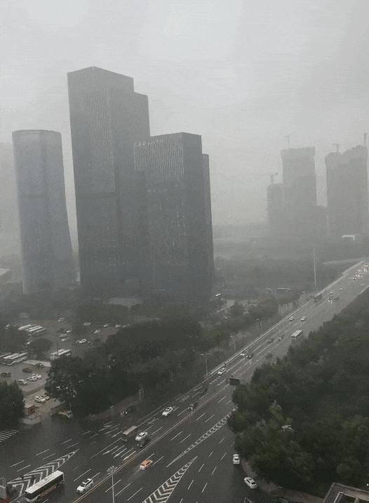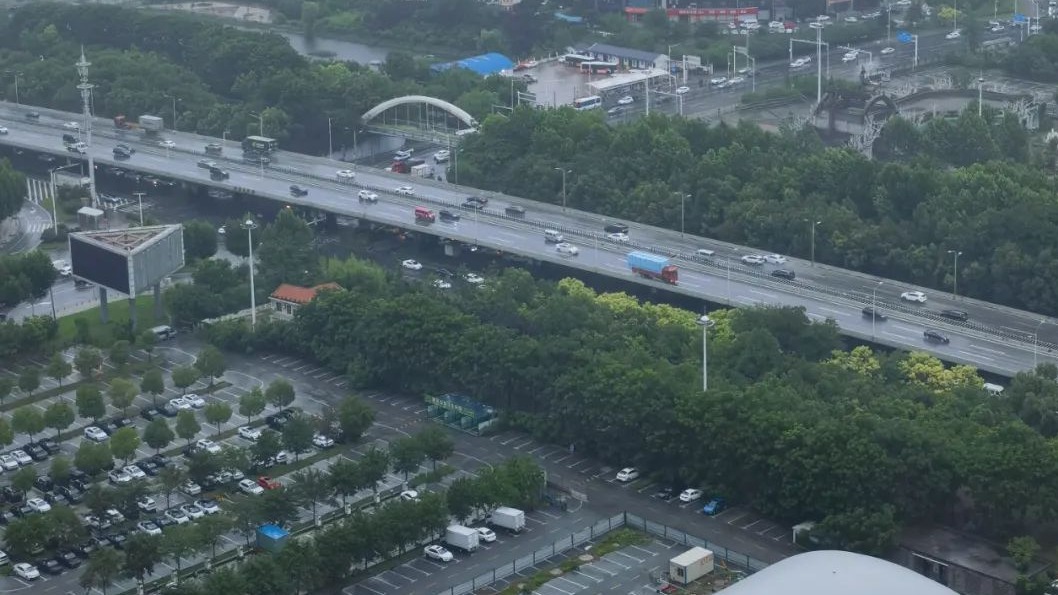 今早7时许,硚口区城华路附近正在下大雨。记者曹欣怡 摄
