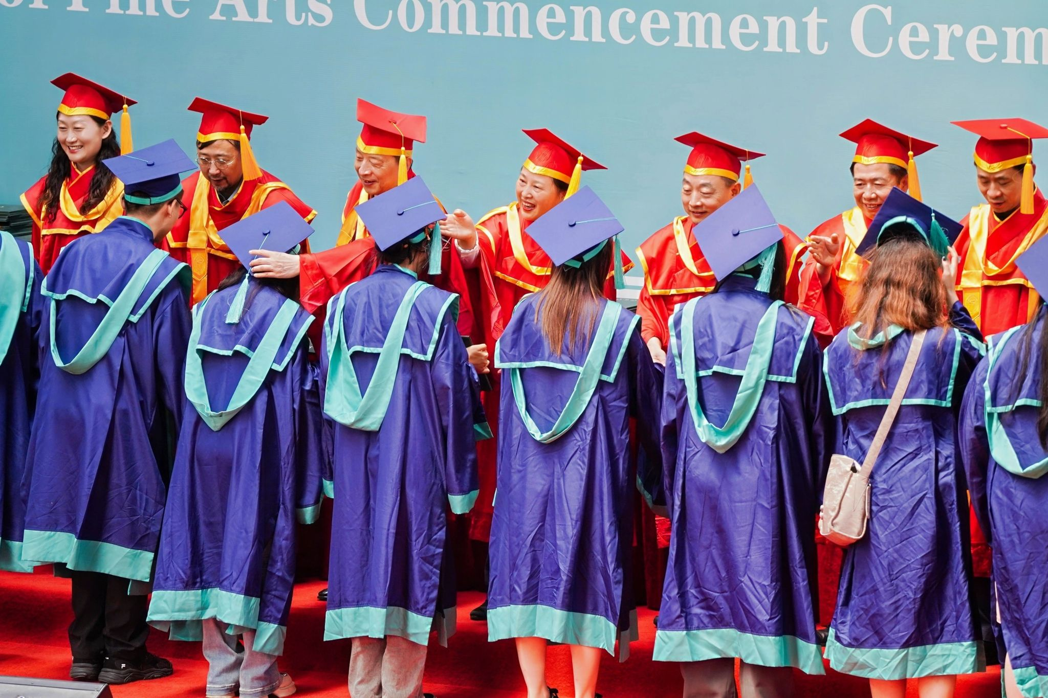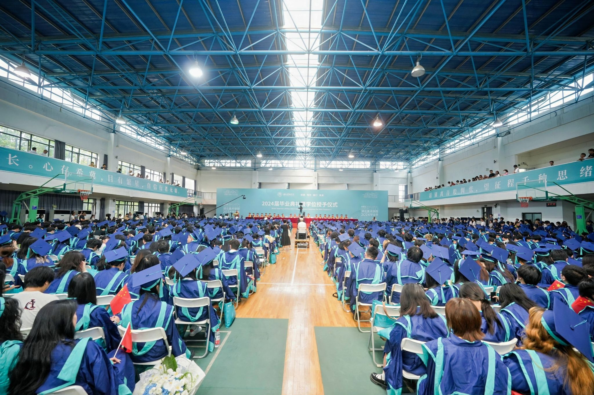 学位授予仪式上,全体校领导及校学位评定委员会委员为毕业生们拨穗正冠,亲授学位。在庄严的仪式中,毕业生们接过学位证书,为在湖美的求学生涯画上完美的句点。