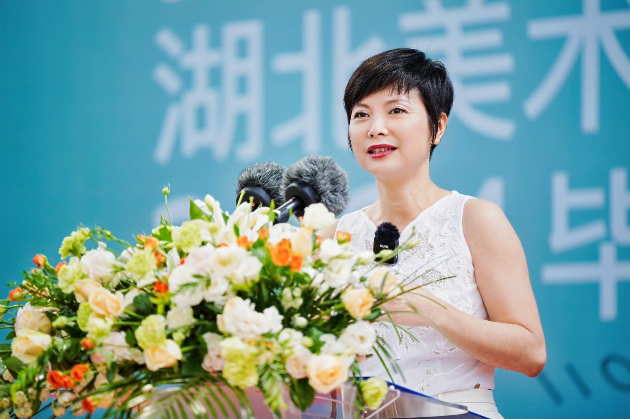 1996届校友、深圳艺之卉时尚集团品牌创始人、著名服装设计师赵卉洲作为校友代表发言。她回顾了在湖美求学的美好时光,也向大家分享了个人创业奋斗的历程。她鼓励同学们要保持热爱、尊重选择、活在当下,要有信念和勇气,不断追求梦想和目标,学会调整心态,保持积极向上的精神风貌,在砥砺前行中实现人生价值。