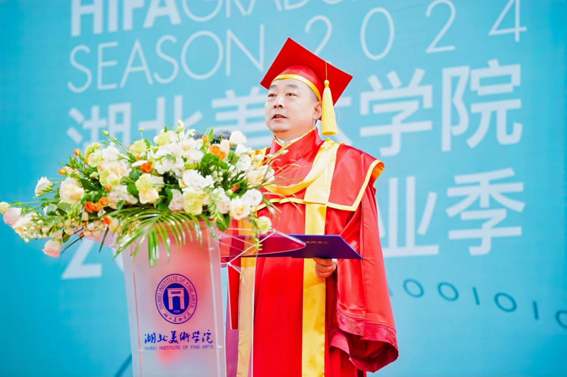 周峰寄语同学们要胸怀天下,向下扎根,做强国建设的奉献者;要薪火相传,向美而行,做中华美育的传播者;要挥桨破浪,向阳绽放,做青春逐梦的奋斗者。希望大家永葆湖美人的家国情怀、美育基因、卓越品质,秉持校训精神,赓续百年学脉,将个人的理想追求融入党和国家事业之中,从国家经济社会发展、人民群众生活中寻找研究课题,把艺术创作、设计成果和论文写在祖国大地上,肩负传播中华美育的责任,成为现代高品质生活方式的引领者、美育事业的播种者、文化传承创新的探索者,创造出无愧于时代的新业绩,让青春在中国式现代化建设的伟大实践中磨砺出彩。