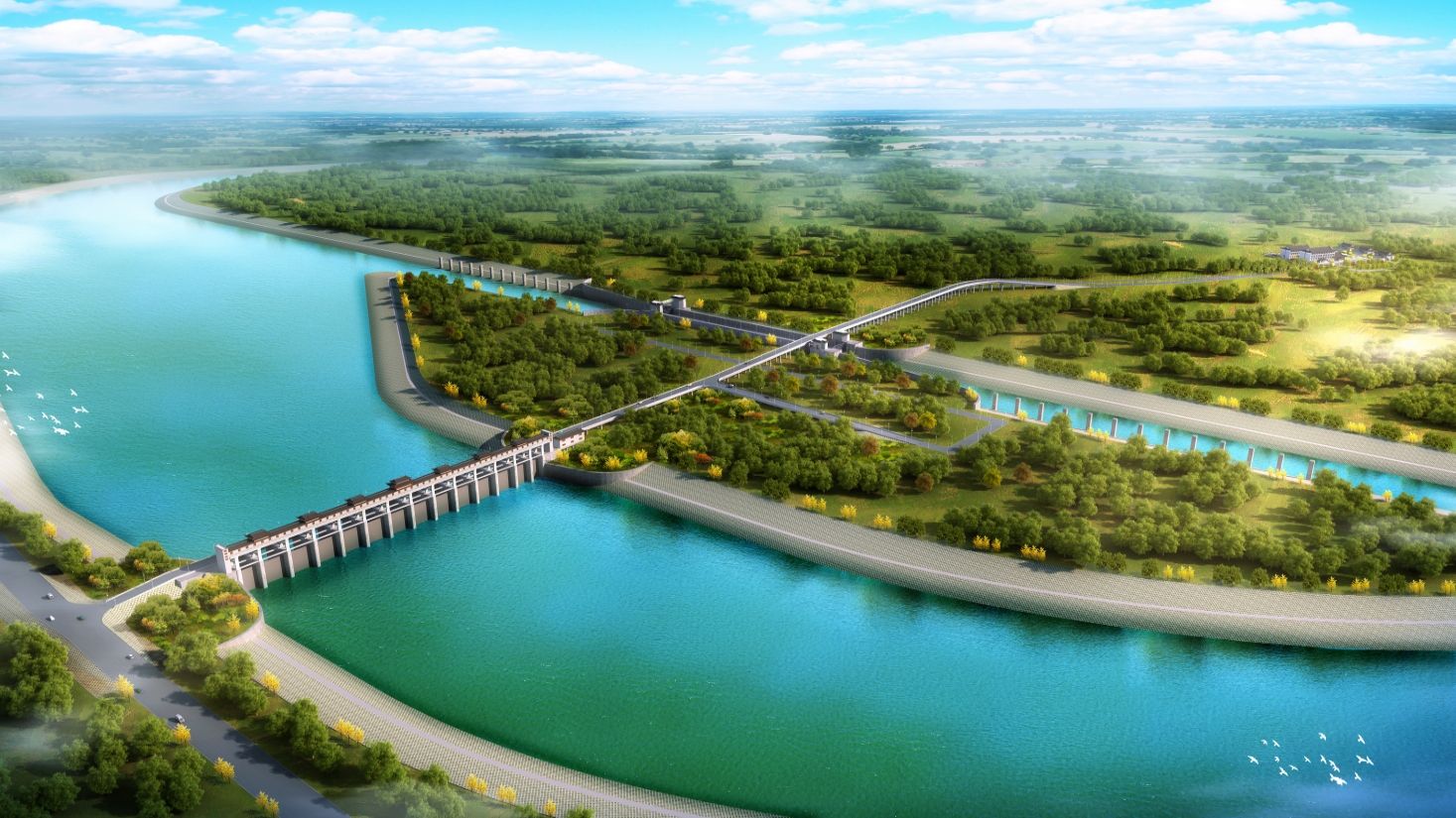 唐河双沟航运枢纽工程位于襄阳市襄州区,距唐河、白河交汇的两河口约8公里。枢纽建筑物主要由船闸、泄水闸、连接段、过鱼设施和跨闸交通桥等组成。