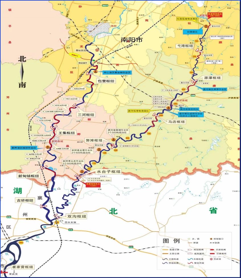 在新的历史条件下,唐白河(唐河)航运开发工程列入交通运输部、湖北省、河南省“十三五”“十四五”综合交通运输规划重点项目。唐河双沟航运枢纽项目作为其中的关键性项目,拉开建设序幕。