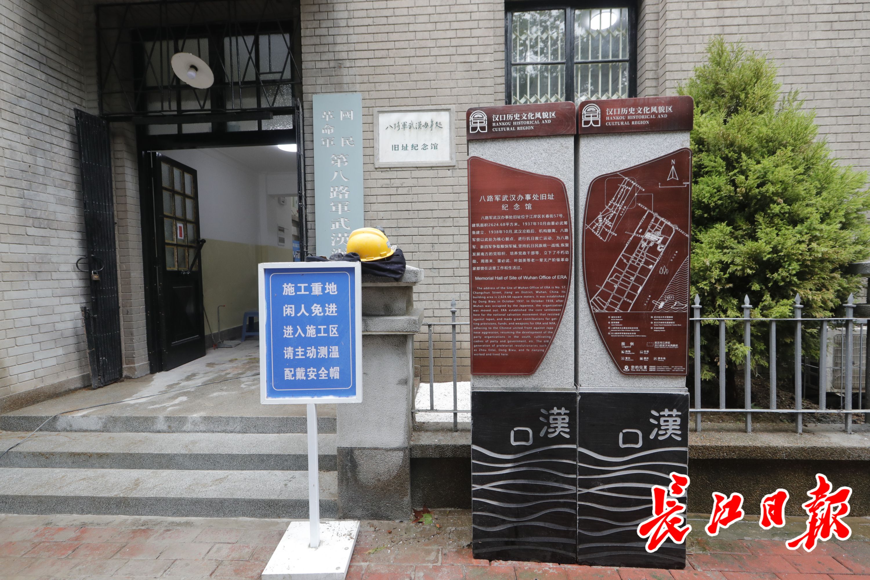 修缮后的八路军武汉办事处旧址纪念馆门前增加汉口历史文化风貌区导览图。长江日报记者杨涛 通讯员周强 朱可嫣 彭华 摄