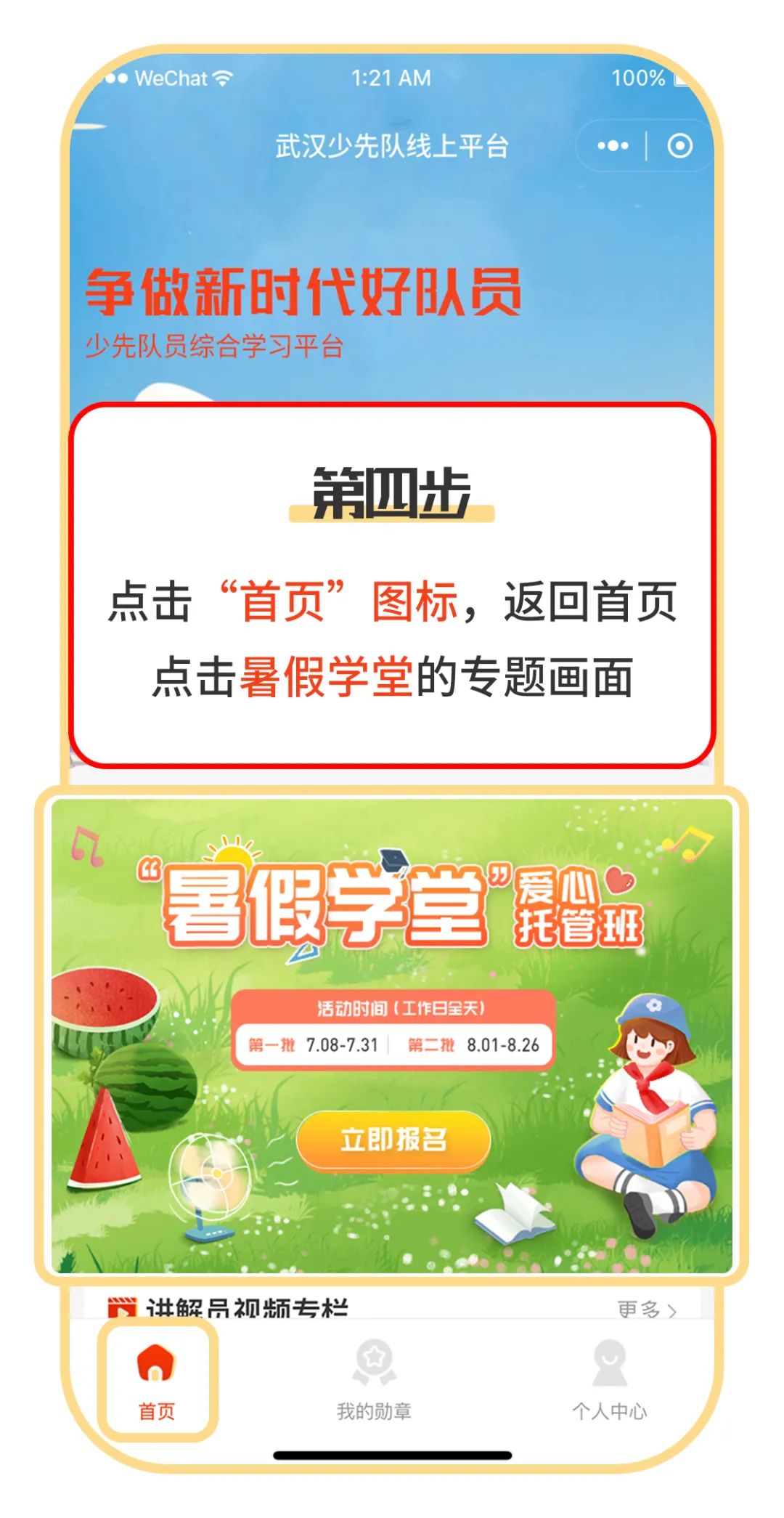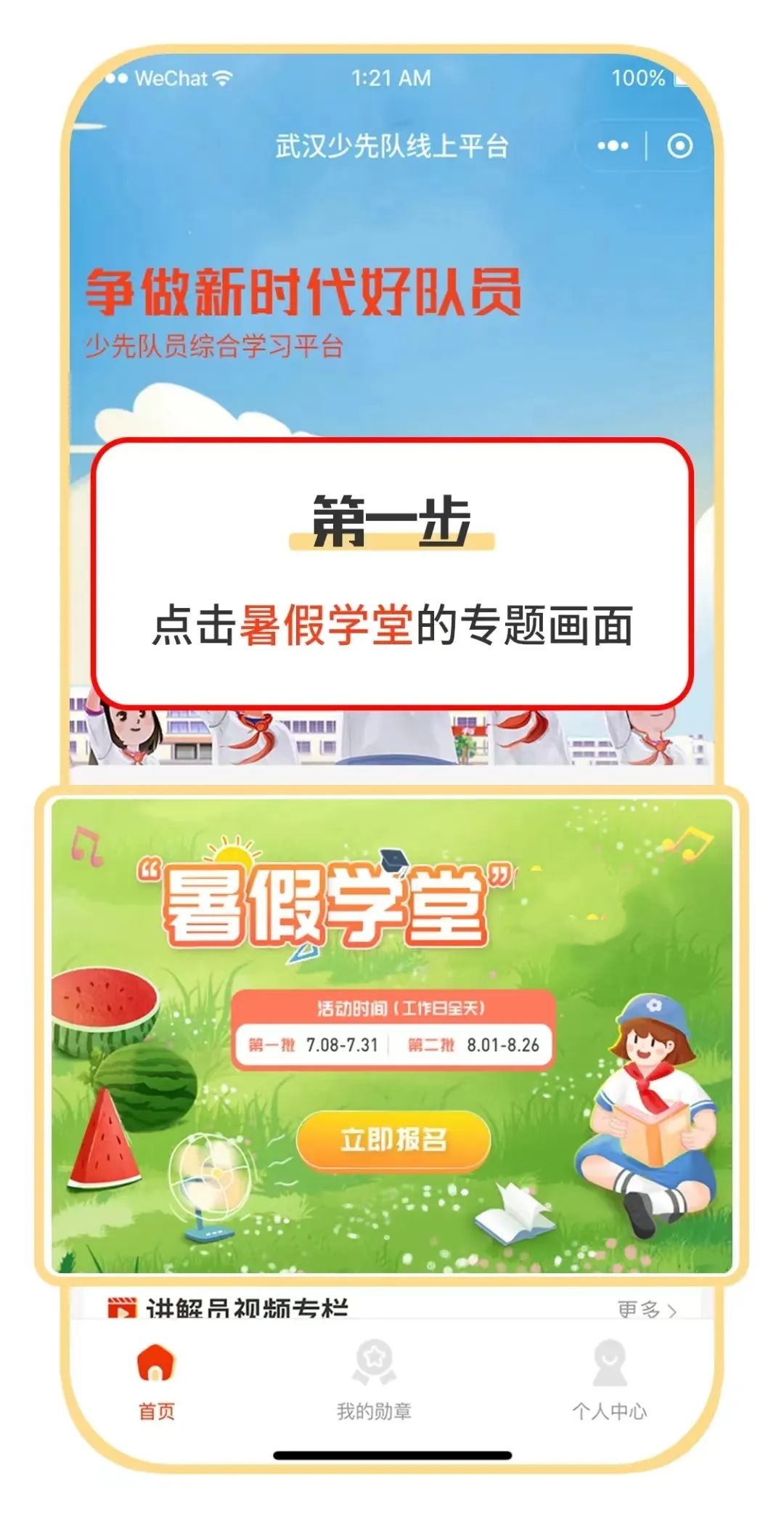7月2日起,家长可在“青春武汉”微信公众号首页点击“暑假学堂”进入报名界面,按照操作指引完成报名信息录入。