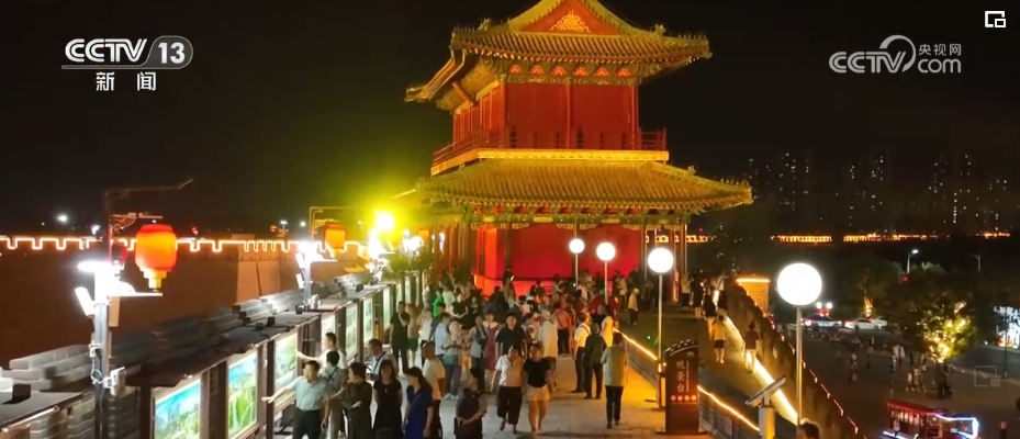 古城的夜不只有余音绕梁,人们或漫步闲谈于古城墙上,或歌舞游戏于阳和楼下,或休闲纳凉于百年古槐旁,或欢聚在古街市井繁花中。