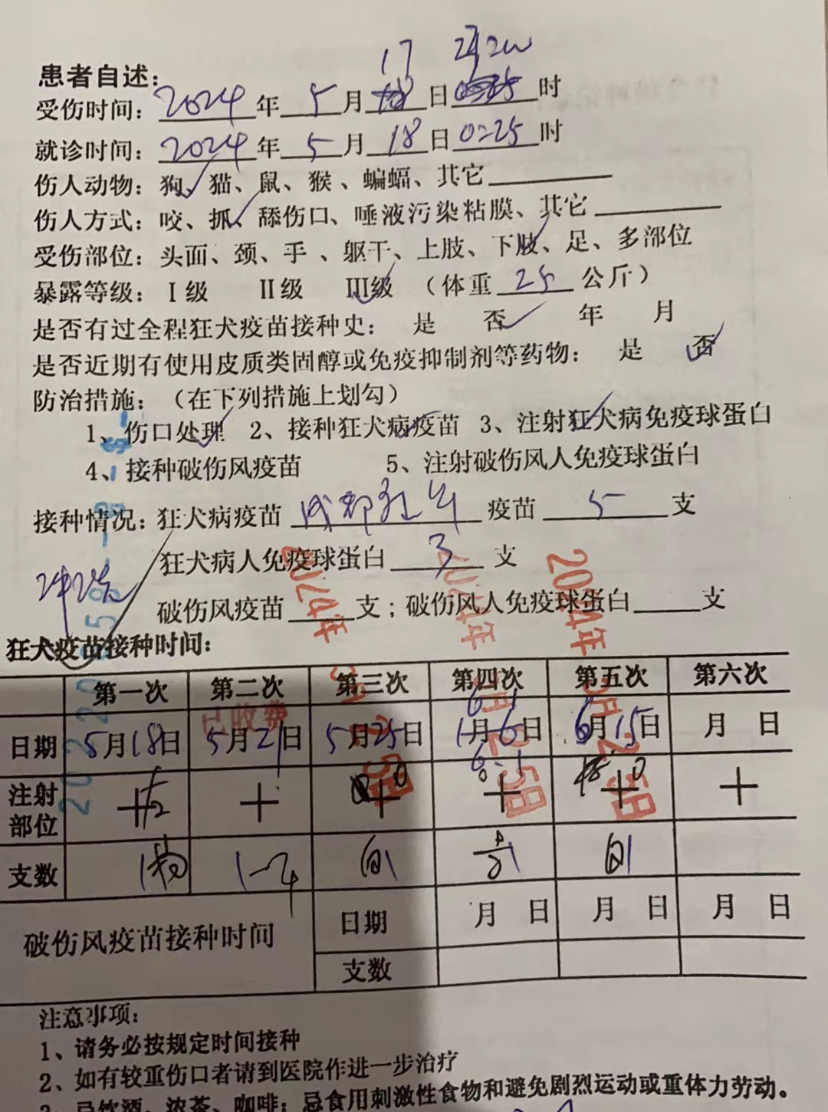 苏女士女儿接种狂犬疫苗病历。苏女士提供