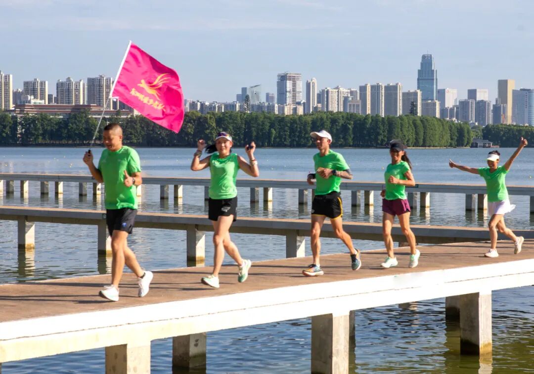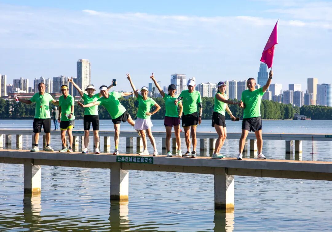 7月6日,东湖绿道飞虎队跑团自华侨城湿地公园启程,经沙滩浴场至磨山,终达凌波门,完成了一场穿越美景的跑步之旅。