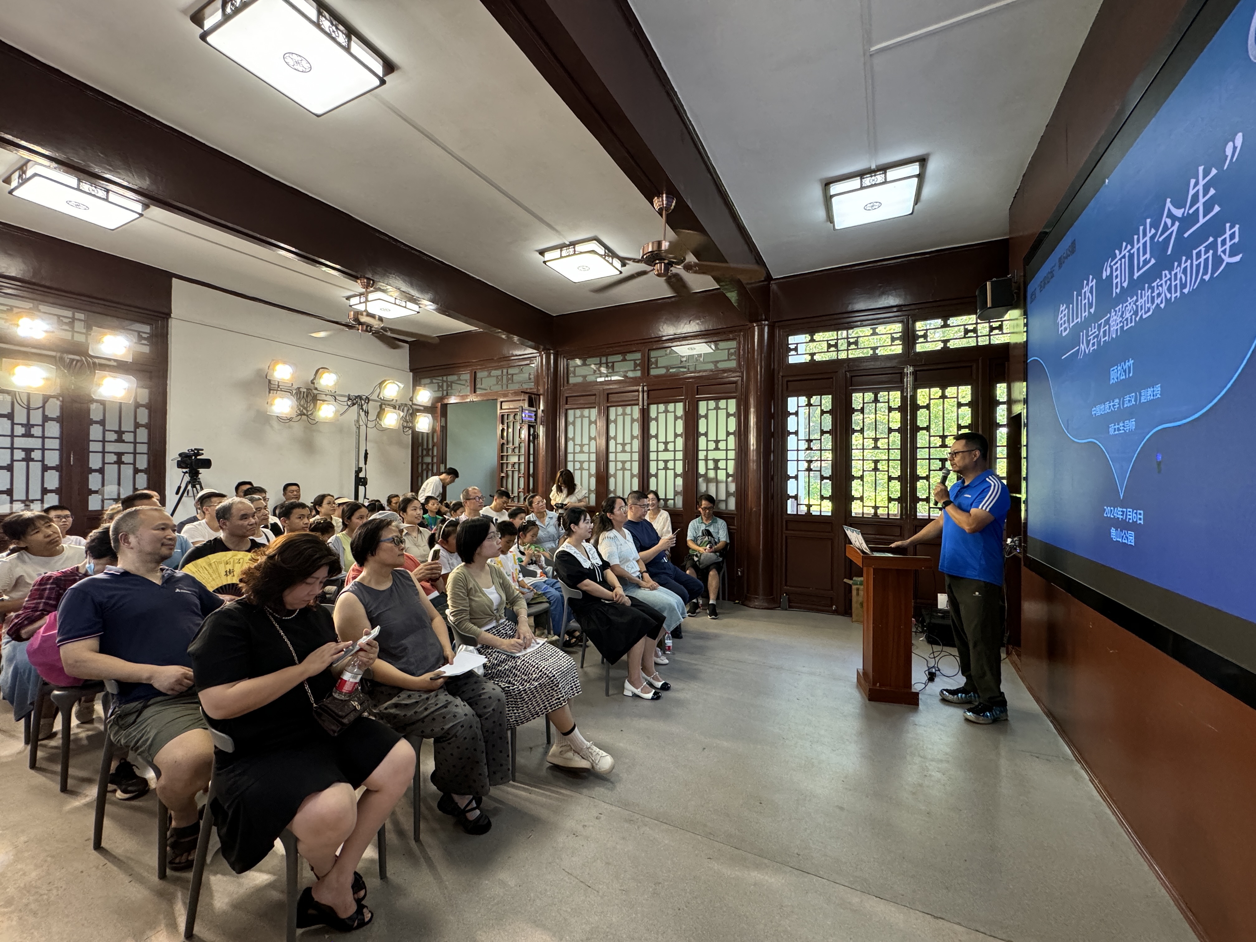 在龟山,一块平平无奇的石头,也许就隐藏着亿万年前地球的历史奥秘。7月6日下午,武汉“名家论坛”走进武汉龟山公园,中国地质大学(武汉)地球科学学院副教授顾松竹为市民带来讲座《龟山的“前世今生”——从岩石解密地球的历史》。透过一块块岩石,顾松竹为市民揭秘龟山的“前世今生”,“爆料”地质学家的工作日常。