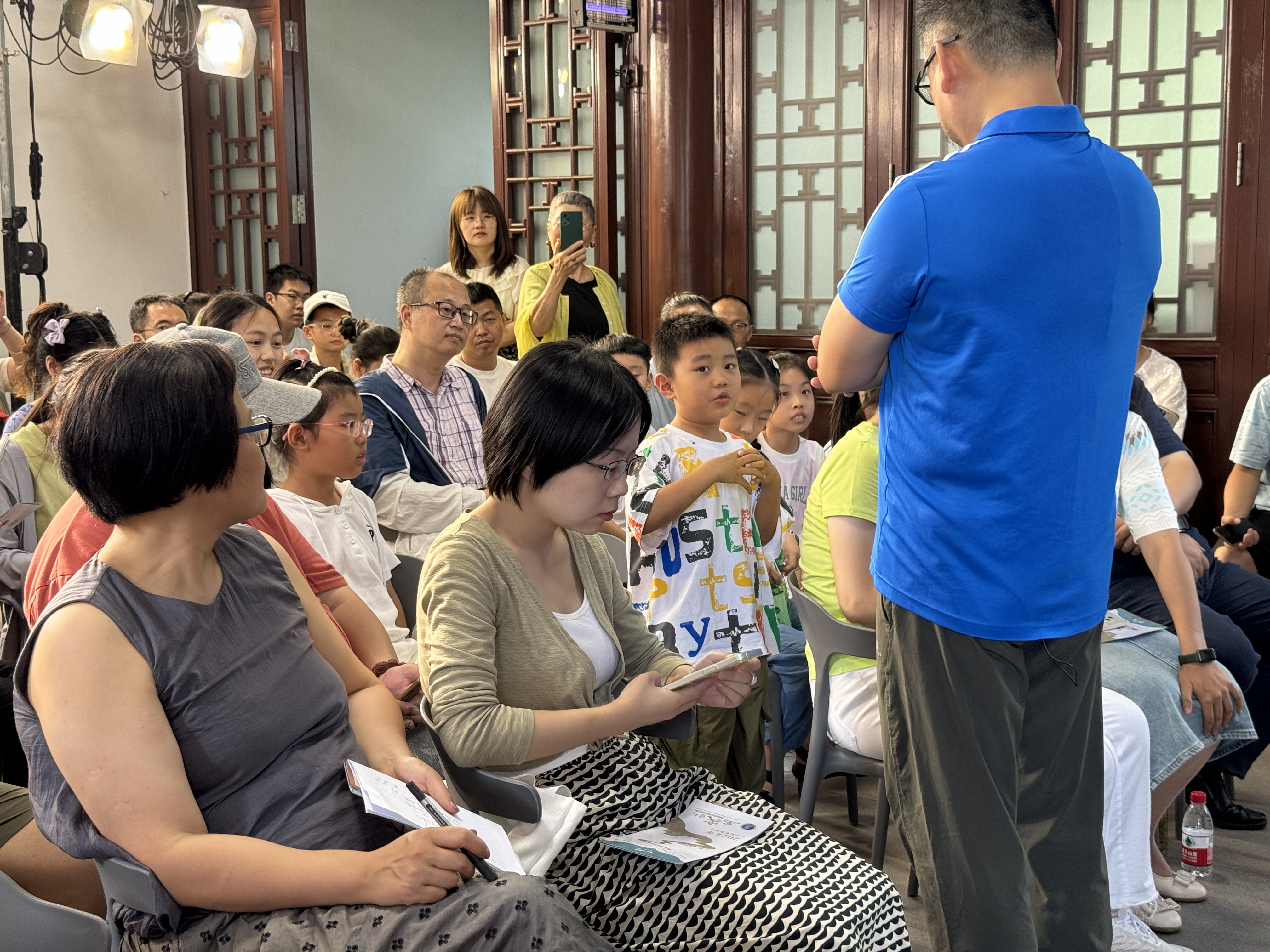 顾松竹以一块石板上侧卧的动物骨架为例向市民详细解释这一科学探索过程。在面对这具骨架时,地质学家们会提出几种可验证的假设:这具骨架是因为生物死亡后被覆盖而形成的?是生物试图钻入岩石却未能逃脱而死?还是在石板上拼接而成?对于每一种假设,地质学家都会预测可能伴随的现象:骨架可能因压力而变形、岩石上可能留有生物钻入的痕迹,或者存在拼接的迹象。随后,他们将重返现场,进行更为深入的观察。如果发现骨架呈现压扁状态,而没有发现钻孔或拼接的痕迹,这就验证了假设之一——生物死亡后被埋藏的情况。通过这样的科学方法,地质学家们能够逐步解开地球历史的层层迷雾,为我们揭示出一个个引人入胜的自然故事。