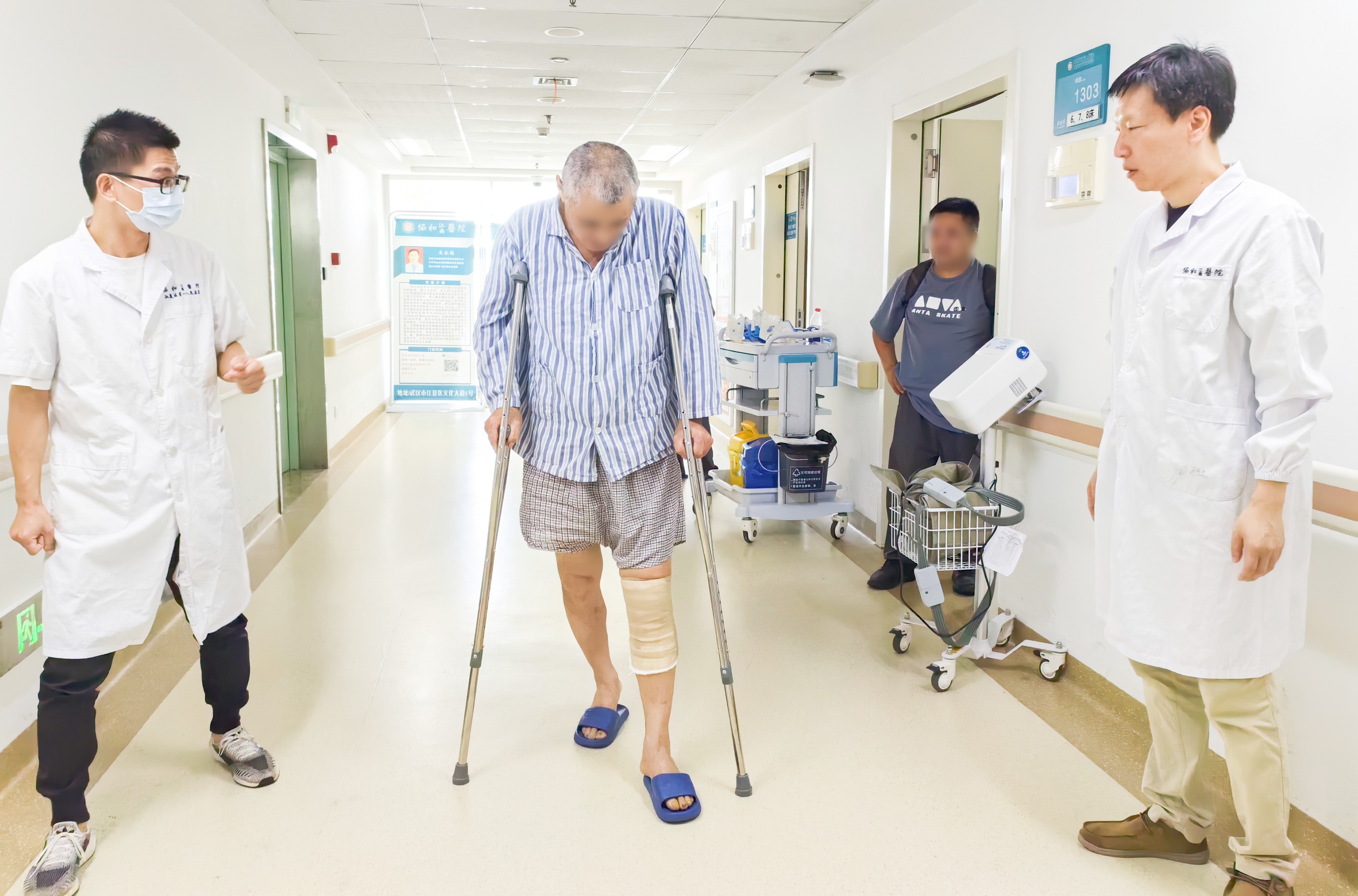 “手术4个小时后,我就可以下地走路了!”7月5日下午,在江夏区第一人民医院(协和江南医院)骨科病房,因左膝骨性关节病接受张英泽院士“改良胫骨高位截骨术(截骨保膝)”的61岁的朱爷爷,在医务人员的鼓励下,已经开始了术后功能锻炼。
