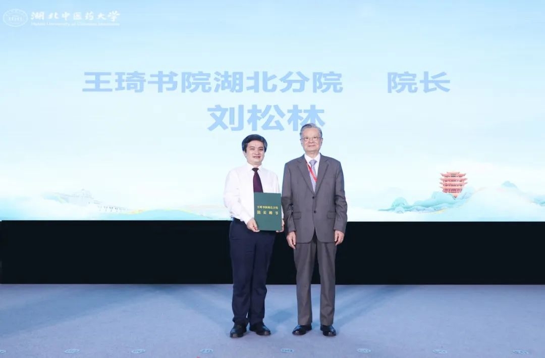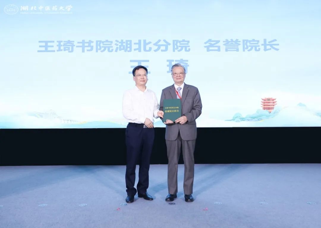 王琦院士为湖北中医药大学党委书记、校长刘松林颁发院长聘书。