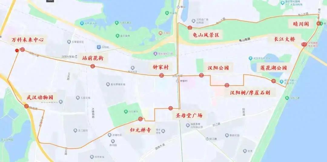 因汉阳区多处文旅景点之间分散于山湖之间,变“过客”经济为“留客”经济,汉阳古城风貌区旅游定制公交专线计划于本月底正式开通。旅游专线以武汉动物园为起点,归元禅寺为终点,线路长9.9公里,设立12个站点,串联汉阳古城所有景区景点。“开通初期,为方便游客出行,公交一天运行4趟,每趟45分钟,后续将根据客流情况增加车辆和趟数。”建桥街道相关负责人介绍。