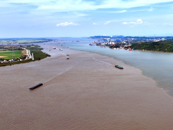 长江与鄱阳湖交汇处再现“江湖两色”奇观。