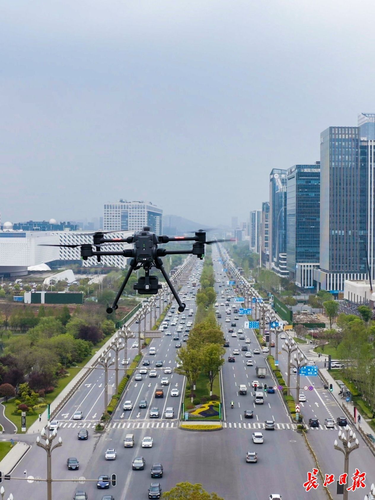 无人机在大悦城附近巡逻。 周超 摄