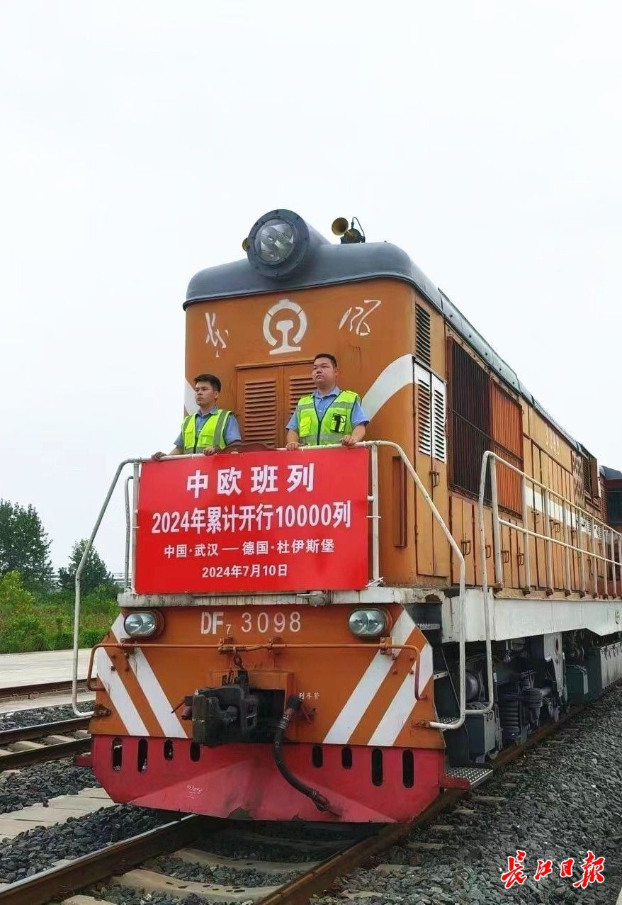 7月10日,满载55柜货物的中欧班列(武汉)从吴家山站缓缓开出。这是今年开行的全国第1万列中欧班列。