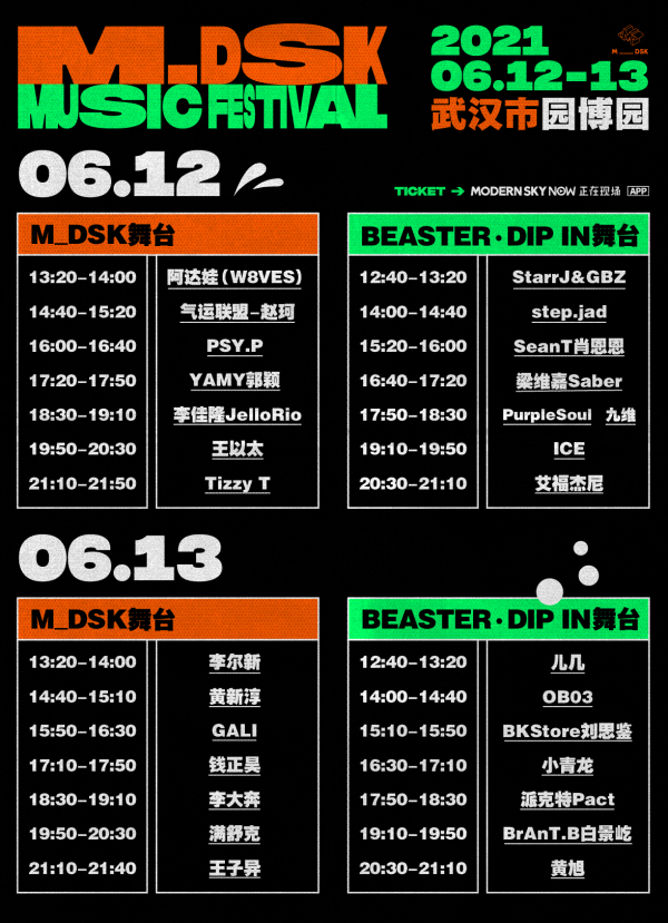 此次武汉MDSK全阵容集结29组风格各异的实力HIP-HOP音乐人,在M_DSK和BEASTER·DIP IN双舞台呈现。