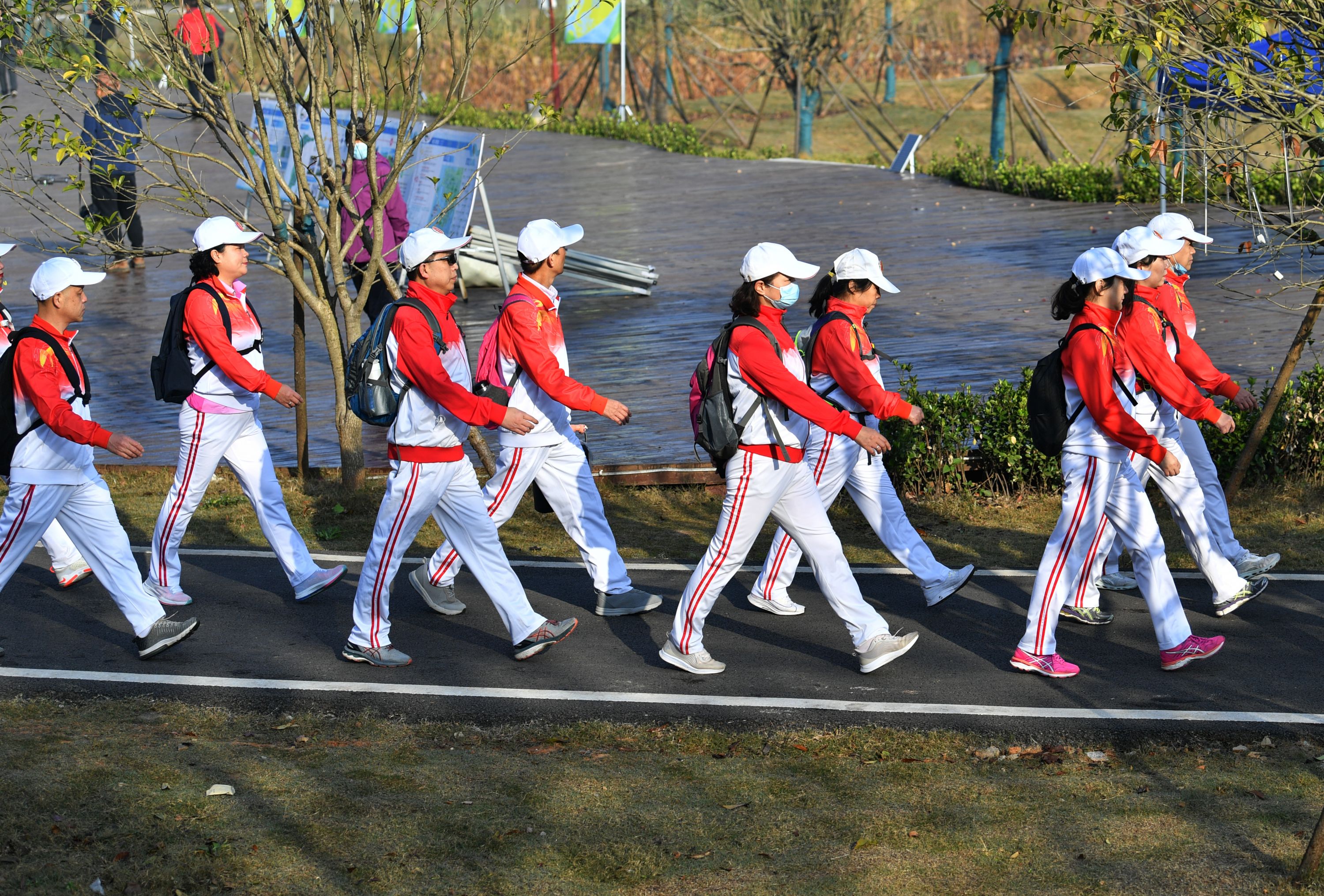 市民行进在城市绿道上。 喻志勇 摄