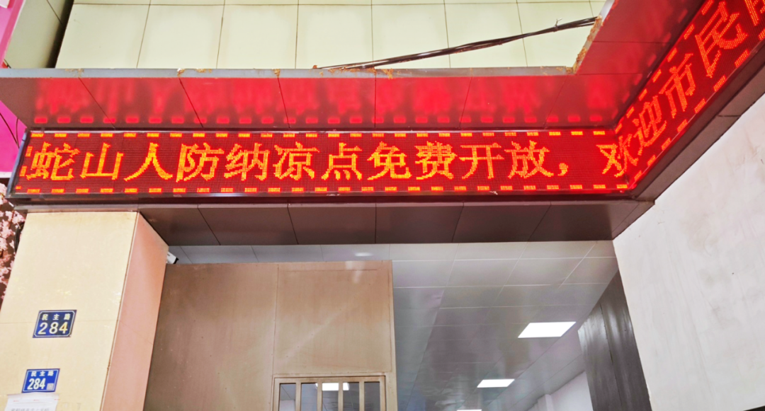 7月4日,我和朋友一起来到武汉。5日上午,当我们踏着轻快的步伐向着黄鹤楼的方向前行时,一块电子屏幕悄然闯入眼帘,上面写着:蛇山人防纳凉点免费开放,欢迎市民前来纳凉。我们暗自记下,继续朝黄鹤楼走去。