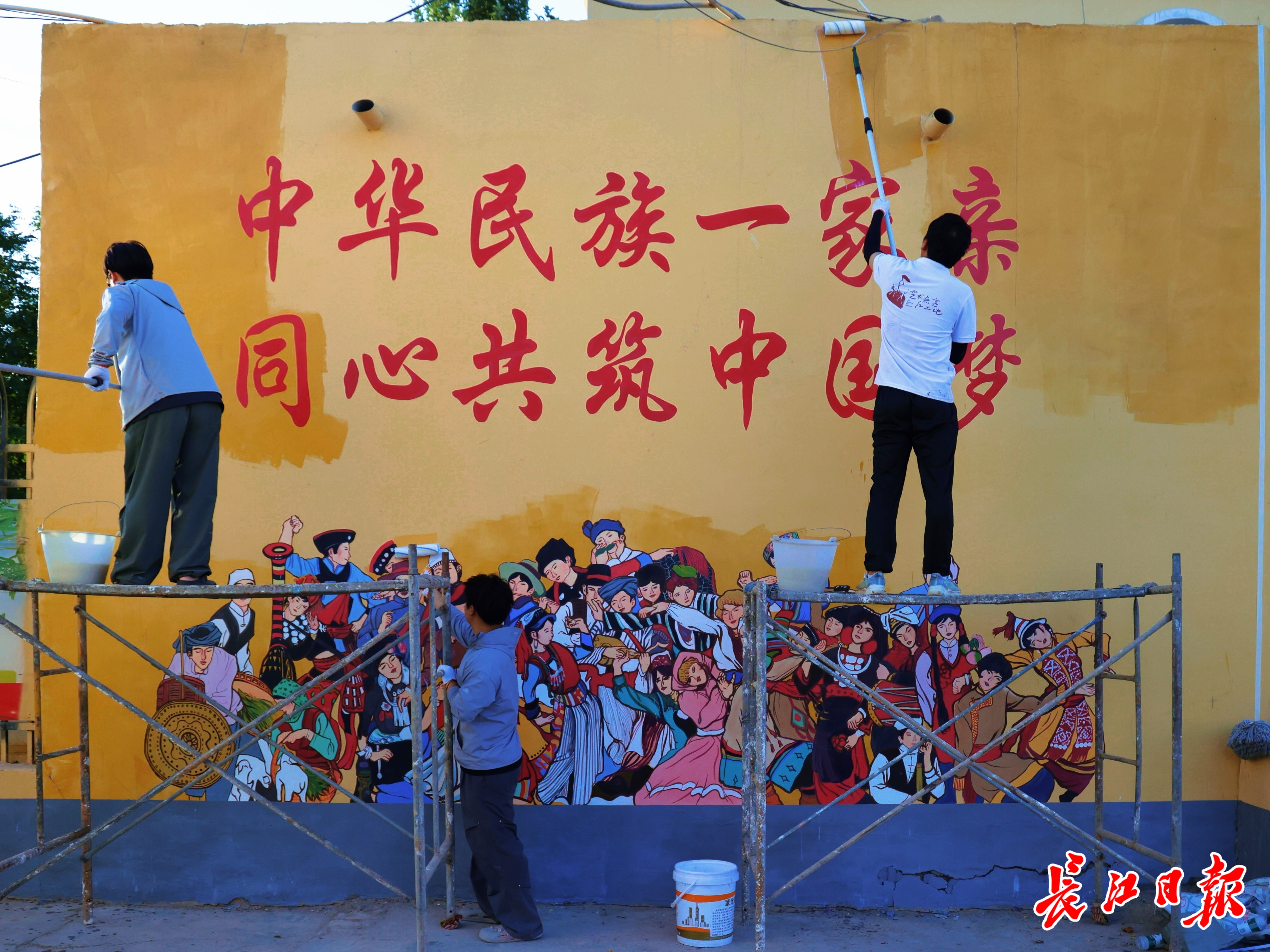 团队成员绘制“中华民族一家亲”。