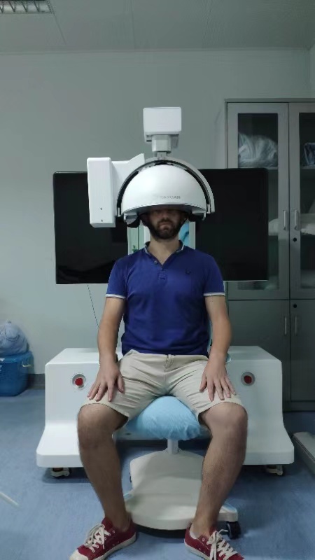“凳子高度可以调整,还配有轮子。”张旻说,这样便于设备根据临床需求在医院内移动。最重要的是,头盔设计成半球形,可减少检测通道的数量,不受时空、姿态的限制,能实现实时动态成像。