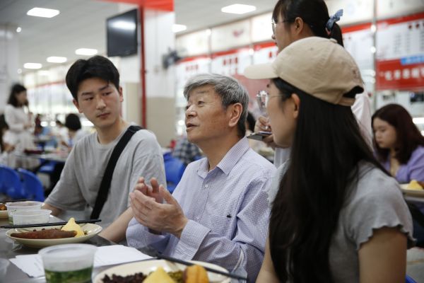 活动现场,学校的老教师现场当起“讲解员”,为在场师生讲述“忆苦思甜饭”、红军长征、武汉解放等红色故事。餐厅的一角,该校年近七旬的离退休党员教师徐伟民身边围坐着学生,津津有味地听徐伟民讲72年前武汉解放的历史,与同学们一起重温那段军民鱼水情、故土忆往昔的革命故事。