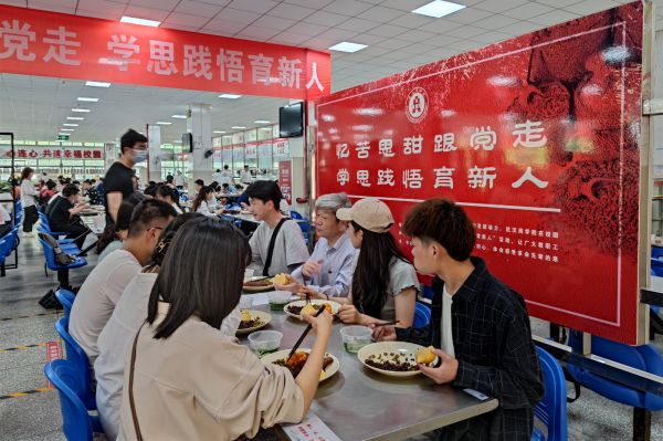 长江日报5月14日讯 吃一餐“忆苦思甜饭”,听一堂生动党史课。5月14日中午,武汉商学院在北区餐厅开展“忆苦思甜跟党走,学思践悟育新人”主题教育,为全校师生送上200份“忆苦思甜饭”,讲述红色故事,引导全校师生进一步感悟革命先辈艰苦奋斗、百折不挠的精神,明志前行。