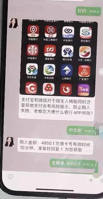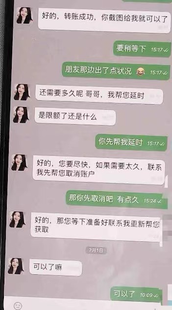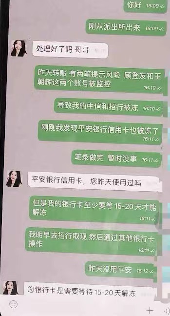 在转账过程中,韩文甚至将“交易异常”“民警找我了”这些信息都在手机中告诉“物流员”,但对方一直在追问他是否还有其他银行的App可以使用,甚至表示可以为他提供网上借贷渠道。