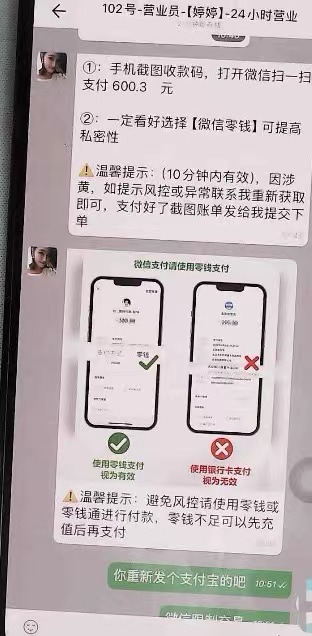 群主告诉冰冰,这是一份“网购好评员”工作,工作流程是按照其发来的视频逐步完成下单并由企业代付即可。冰冰按照视频里流程一步步操作,接着扫描了群主发给她的二维码,可并未弹出视频中的“企业代付”页面,冰冰扫码后很快刷脸支付,显示“支付成功”。