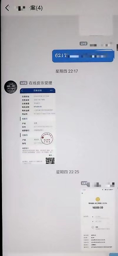 6月2日,翟女士查询到该平台账户余额变成近1200余万元,她向“客服张曼”提出想要提现。对方表示,想提现必须先付“佣金”,按照提现金额的3%收取。当天,翟女士通过手机银行向对方提供的账户转账4次,共转走34万元,当日下午她就接到反电诈中心民警打来的预警电话。