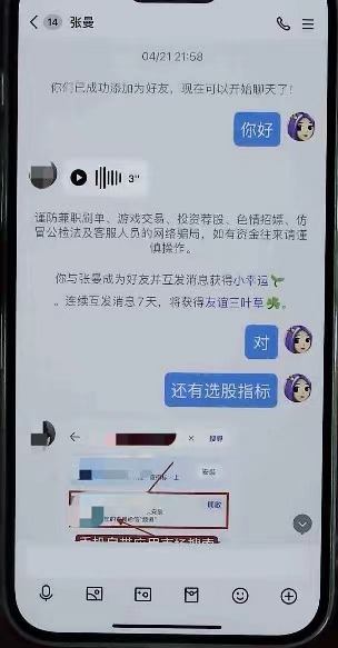 55岁的武汉市民翟女士是老股民,今年4月,她在快手App上刷到一个讲解股票的直播间,感觉主播说得不错,就点击直播间内一个“客服”的头像沟通,随后添加“客服张曼”为QQ好友。