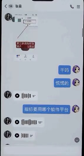如翟女士所添加的“客服张曼”,其实根本不是该直播间官方客服,而是“埋伏”在直播间内专门添加有投资需求网友的诈骗分子。有些案件中,还有诈骗分子假冒投资人士进入微信群或QQ群,根据群聊天记录来寻找“待宰肥羊”。