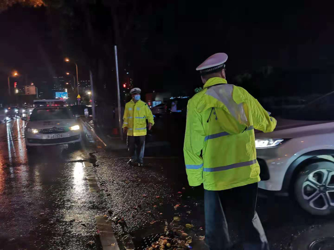 14日晚,东西湖区交通大队二中队民警、辅警提前抵达辖区重点路段排堵保畅。