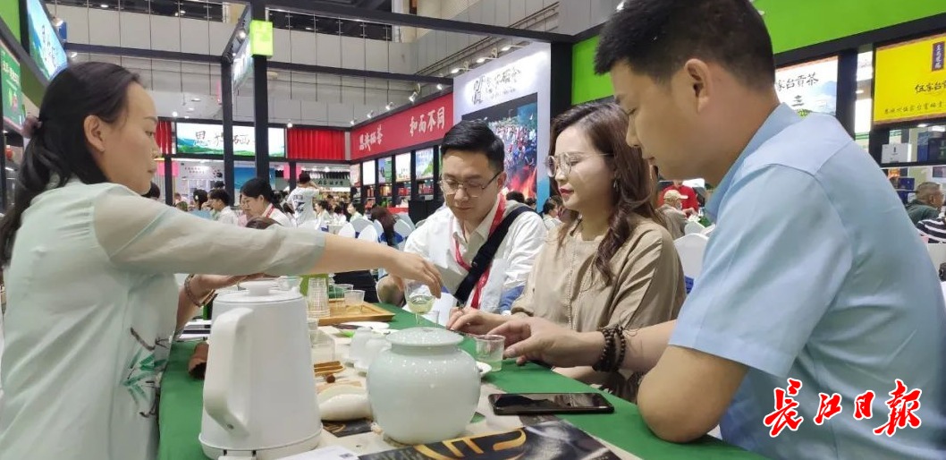 第23届武汉茶博会湖北名茶馆展区,观众正在品茗。长江日报记者刘峥 摄