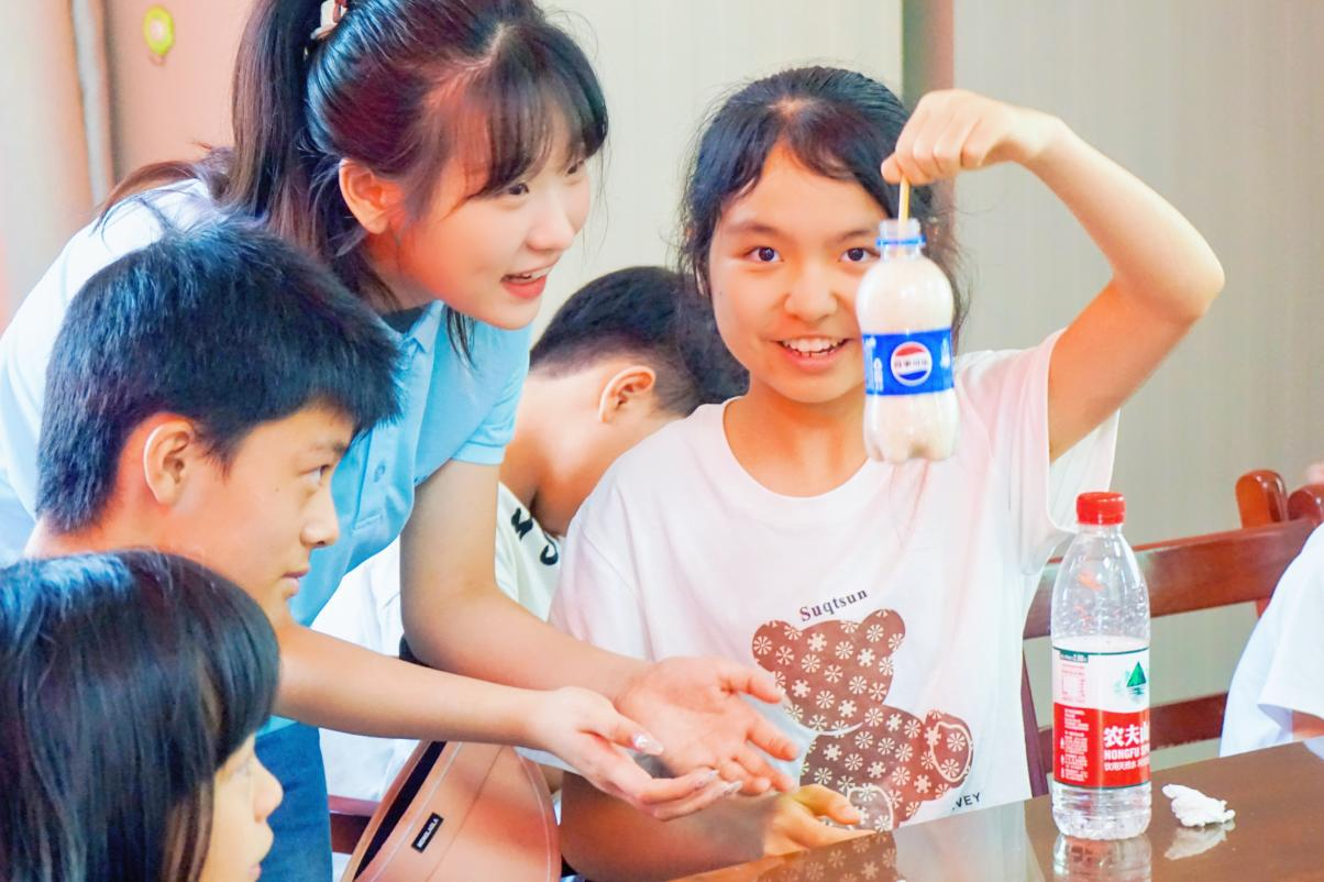 志愿者带领同学们做物理小实验。