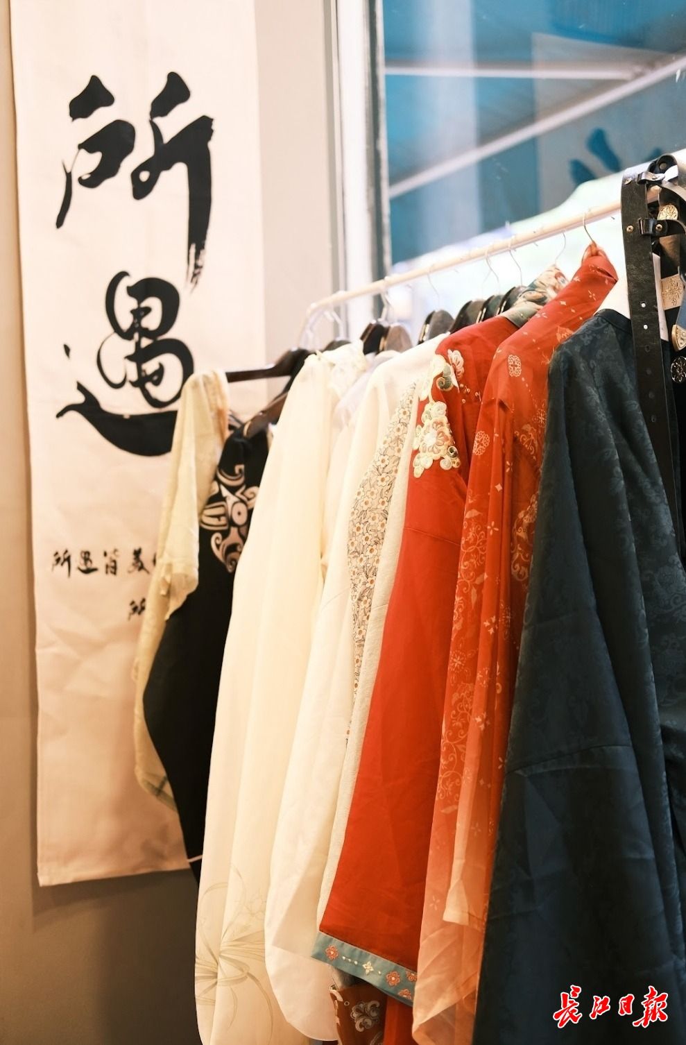 快闪活动中提供的汉服服饰。记者冯雪 摄
