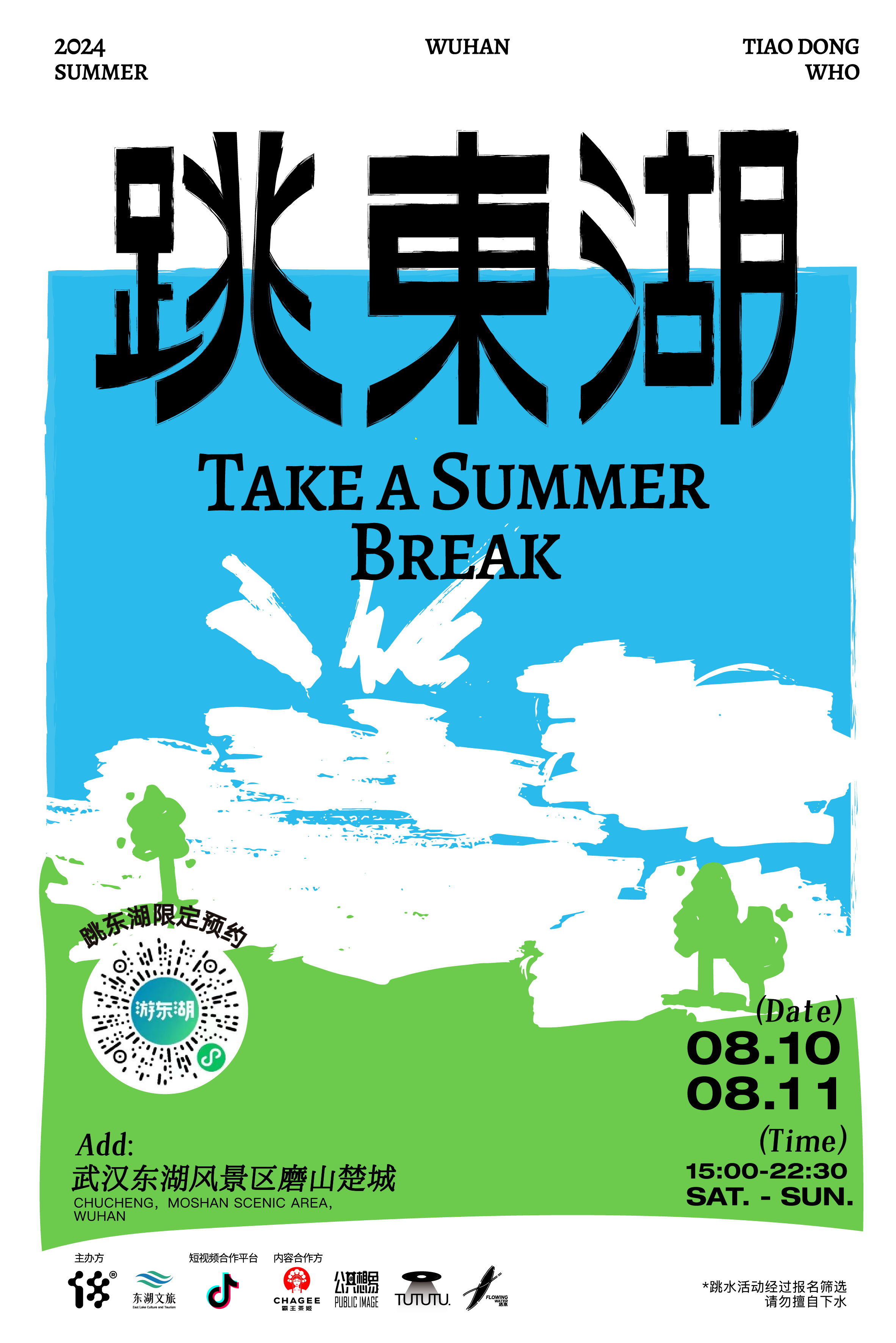 据介绍,今年“跳东湖”活动由武汉文旅集团东湖文旅公司参与联合主办,将于8月10日至8月11日每天15:00起在东湖磨山景区楚城附近水域举办,跳东湖的“跳友”们可以到现场与湖水来一次肆意的亲密接触,不下水的游客也可以在此感受浓郁的武汉夏日激情。记者了解到,活动现场将设置三大音乐舞台,来自天南地北的音乐人将在此为游客带来不同风格的音乐演出,现场还将设置户外运动俱乐部和各类艺术展,陆冲、平衡板、尊巴等户外运动带来暴汗的淋漓畅快,90余家品牌将集结在此,餐食、咖啡、精酿啤酒、艺术手作及众多优质品牌店将呈现出啤酒夏日、湖边野餐、咖啡烘焙、夏日百货、城市户外等全方位的潮流市集,让游客们“吃饱玩好”。此外,今年的“跳东湖”正好遇上七夕传统佳节,活动现场还将设置相亲角,为前来游玩的游客提供自由交友的平台。