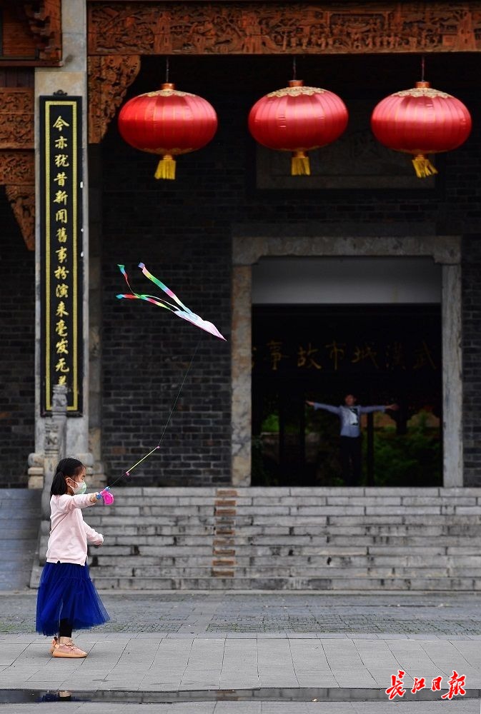 5月16日,武汉园博园汉口里,小朋友在玩风筝。长江日报记者李永刚 摄