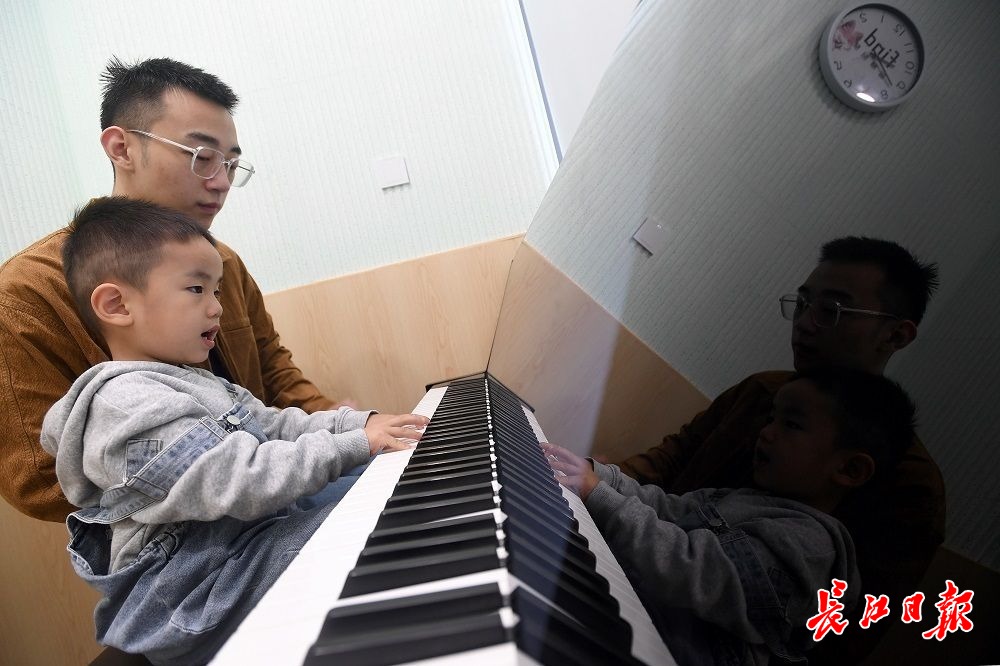 5月16日上午,武汉天地壹方北馆,四岁半的晨宝上钢琴课。长江日报记者周超 摄