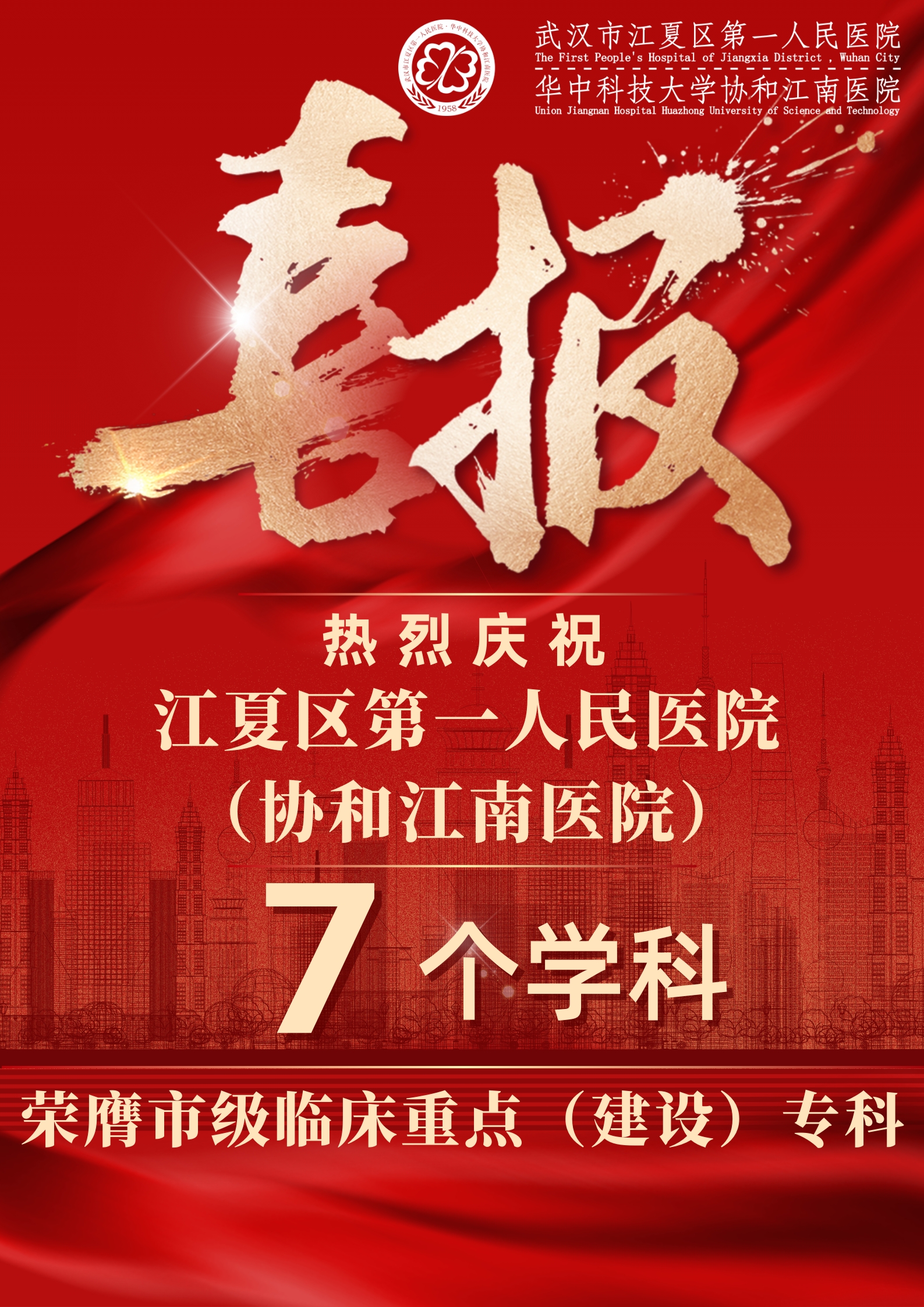 截至目前,该院已成功创建湖北省省级临床重点专科7个、武汉市临床重点(建设)专科30个,重点专科数量位列武汉市新城区、协和托管医院“双第一”,在市级医院重点专科综合排名中位列第六。