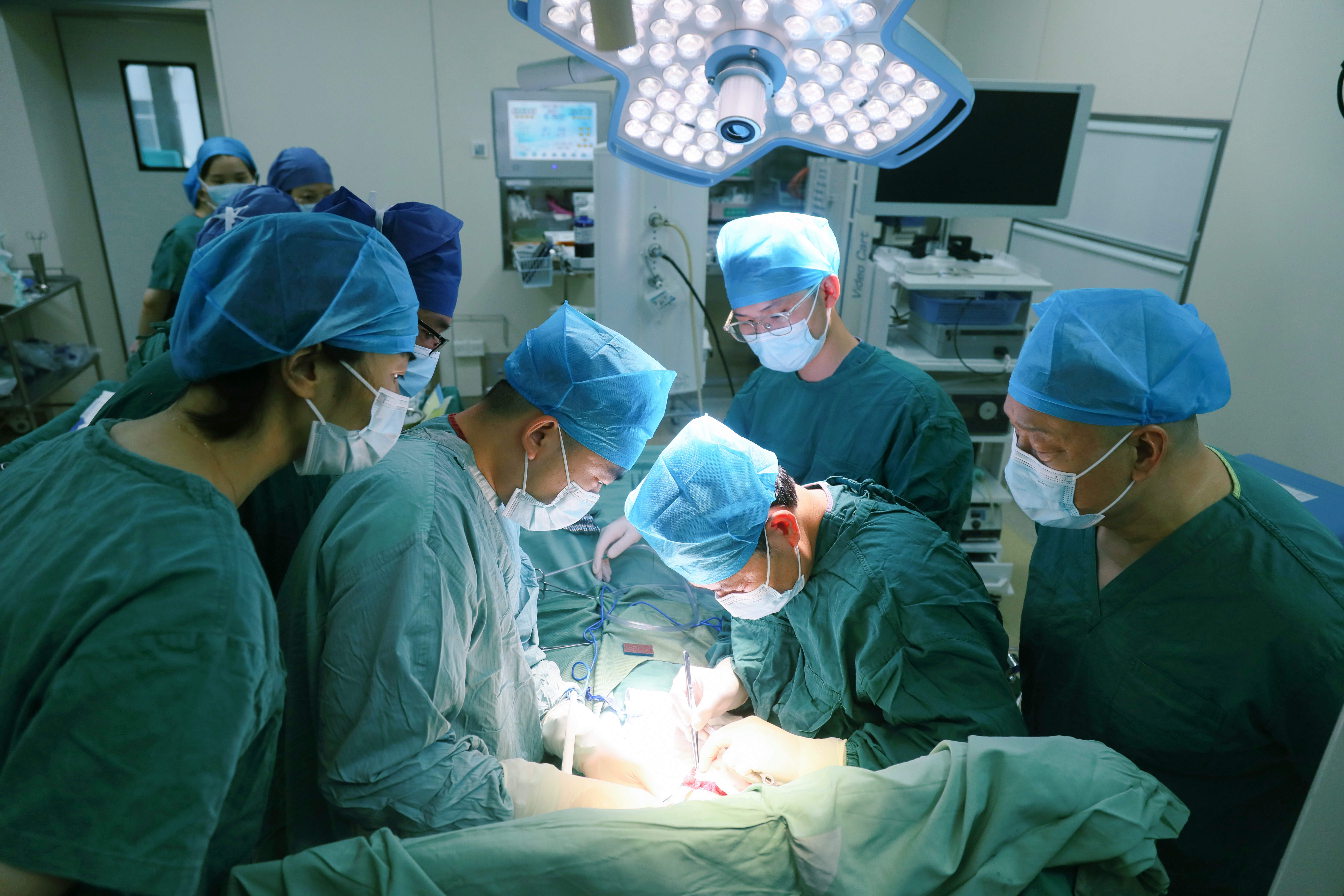 杨星海主任医师带领多学科专家团队为豆豆进行补瘘手术。