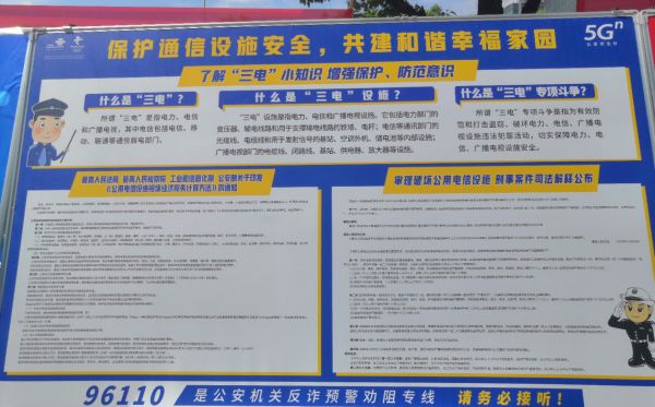 据市公安局李警官介绍,近年来的“三电”案件,已经逐步由盗窃、破坏电缆向盗窃、破坏基站的设备设施方向转移,约80%的案件盗窃物品都涉及到通信基站内部的主板、电池、光纤等,相比以往,破坏量更大,涉案金额更高。“一组主板一般由几十块板卡组成,小偷都只会偷盗其中的几块,销赃金额不过几百上千块人民币,但对通信运营商来说,一块板卡的缺失会导致一组主板的报废,损失金额达几十万人民币。”李警官提醒市民朋友,包含“电力、电信、广播电视”在内的“三电”设施与日常生活息息相关,自觉保护好“三电”设施是每个公民的责任,在发现类似的违法行为时要及时报警或与相关企业联系,方便企业及时维修、公安机关及时破案。