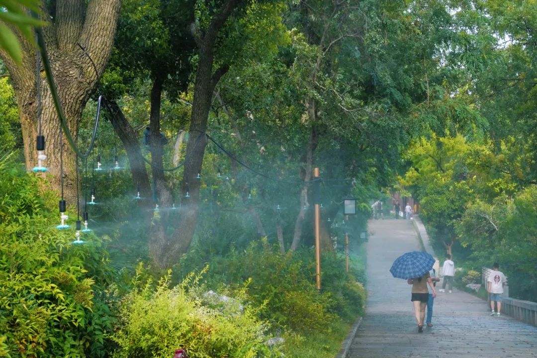 (酷暑里,公园安排了雾森系统)